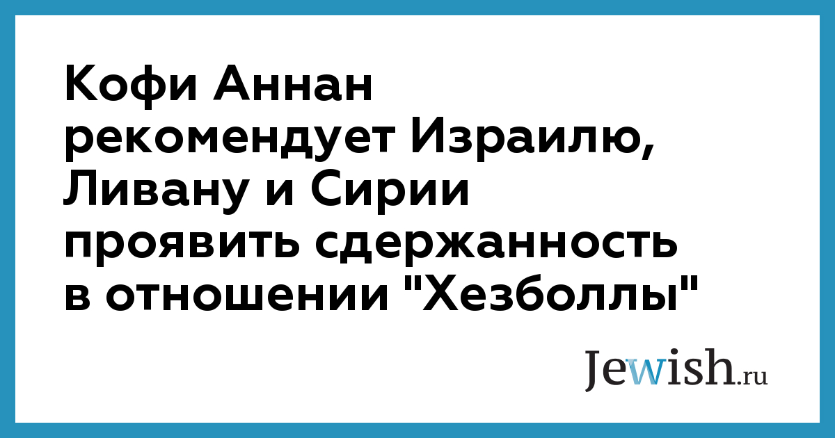 Кофи Аннан рекомендует Израилю, Ливану и Сирии проявить сдержанность в отношении "Хезболлы"