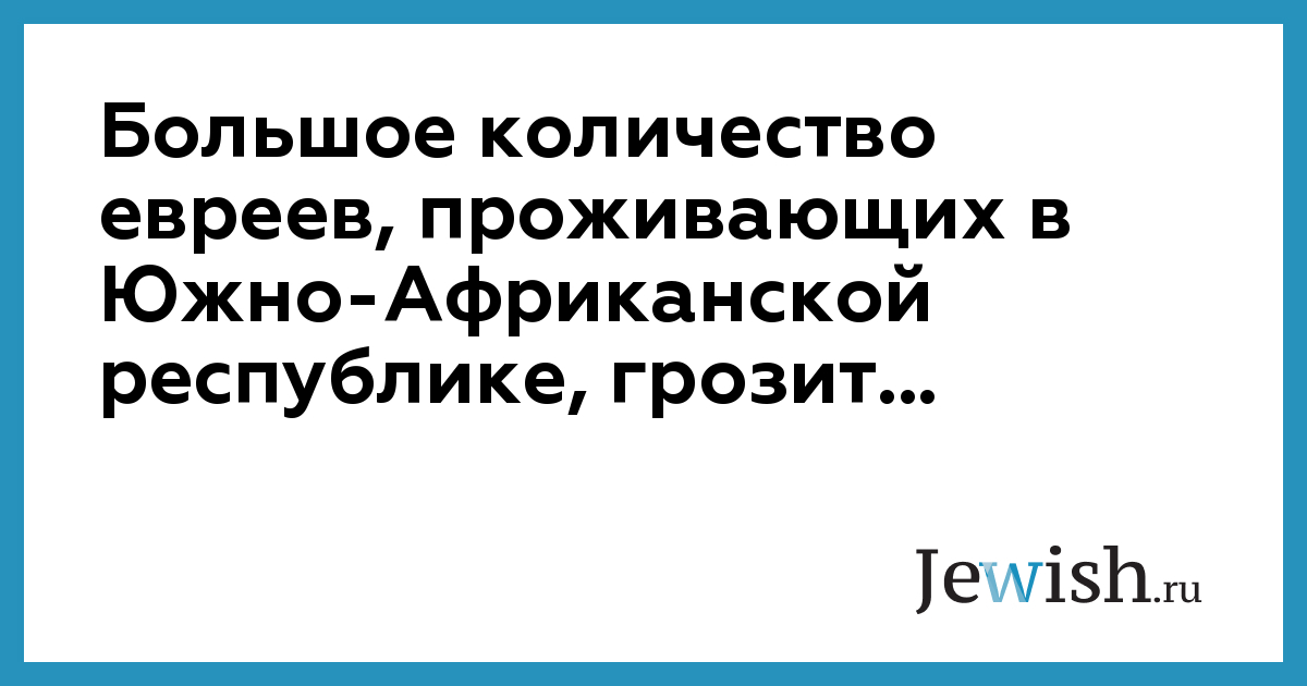 Большое количество евреев, проживающих в Южно-Африканской республике, грозит...