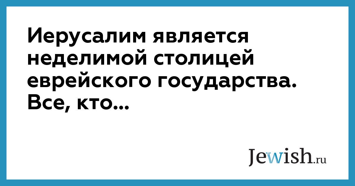 Иерусалим является неделимой столицей еврейского государства. Все, кто...