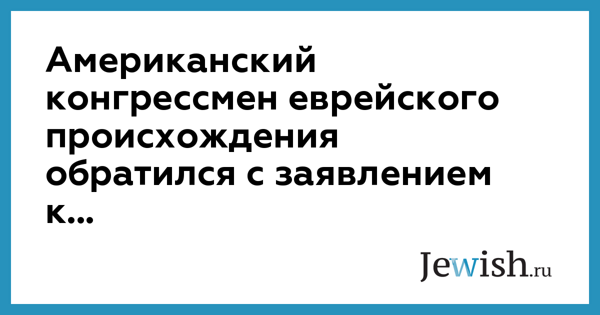 Американский конгрессмен еврейского происхождения обратился с заявлением к...