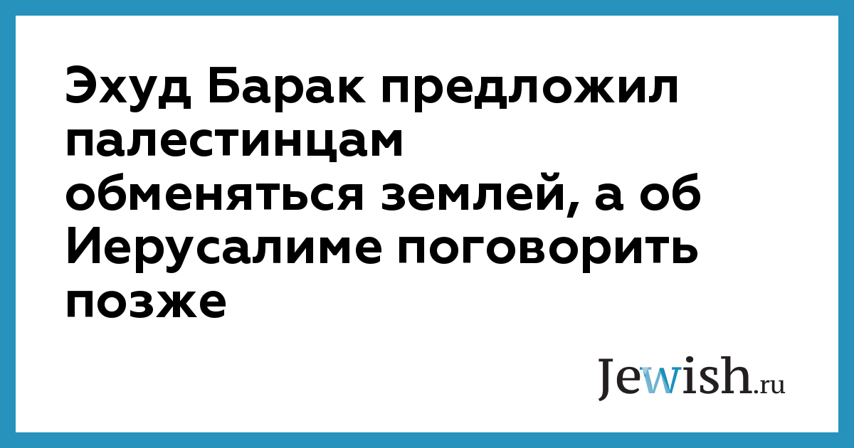 Эхуд Барак предложил палестинцам обменяться землей, а об Иерусалиме поговорить позже