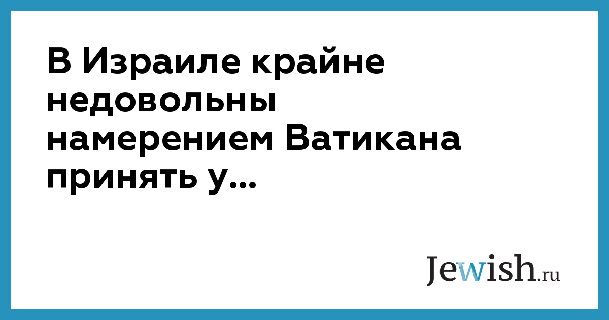 В Израиле крайне недовольны намерением Ватикана принять у...