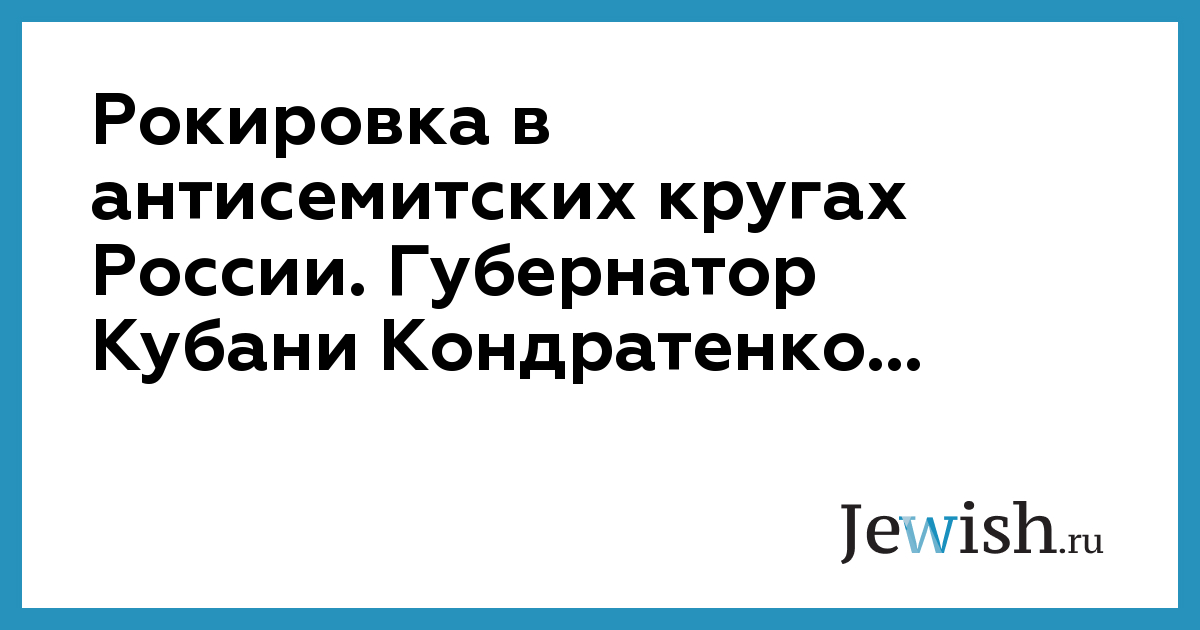 Рокировка в антисемитских кругах России. Губернатор Кубани Кондратенко...