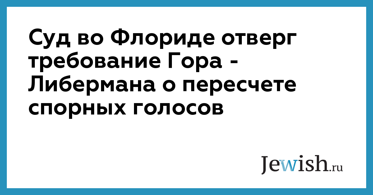 Окружной судья Леон Сандерс Солс отказал адвокатам Гора — Либермана в требовании пересчитать спорные бюллетени, которые сейчас находятся в судебных подвалах во Флориде, таким образом лишив демократического кандидата шансов на победу. Как говорится в постановлении, "суд находит, что в жалобах истца не содержится необходимого количества доказательств". По мнению судьи, юристы Гора не смогли привести никаких подтверждений тому, что проблемы с автоматической системой голосования во Флориде, о которых они говорили, привели к изменениям результатов выборов. Именно это требуется по закону штата для принятия решения о пересчете голосов. В своем заявлении судья прибег к тонкой юридической терминологии, которая едва ли понятна обычному наблюдателю. Он заявил дословно следующее: "Недостаточно показать обоснованную возможность того, что результаты выборов могли быть изменены в связи с этими неисправностями или неточностями. Нужно показать обоснованную вероятность того, что результаты выборов были изменены". И в случае с заявлением Гора судья счет доводы его стороны недостаточно обоснованными. Кроме отказа в пересчете 13 тыс. спорных бюллетеней из округов Палм-Бич и Майами-Дейд, Солс также отверг требование Буша о пересчете голосов еще и в третьем спорном округе, таким образом полностью поддержав аргументы стороны Буша. И, наконец, Сандерс Солс заявил, что по закону Флориды нельзя утвердить неполный ручной пересчет лишь части голосов – необходимо пересчитывать все голоса данного округа. А это для Гора было бы равносильно поражению, так как время сейчас работает против него.