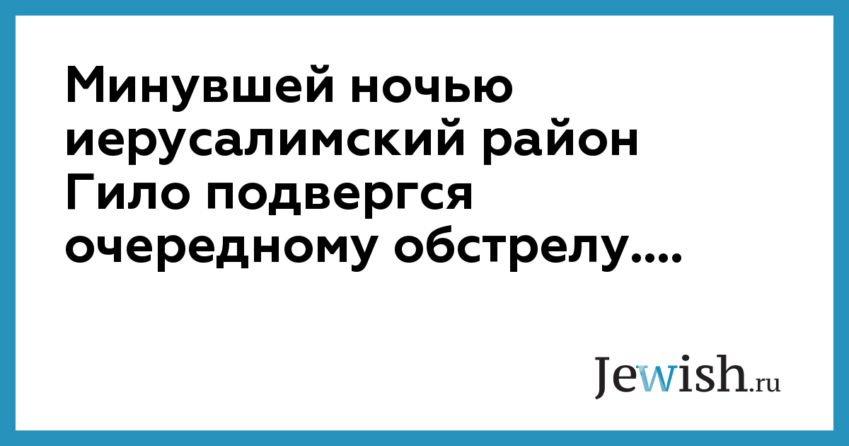 Минувшей ночью иерусалимский район Гило подвергся очередному обстрелу....