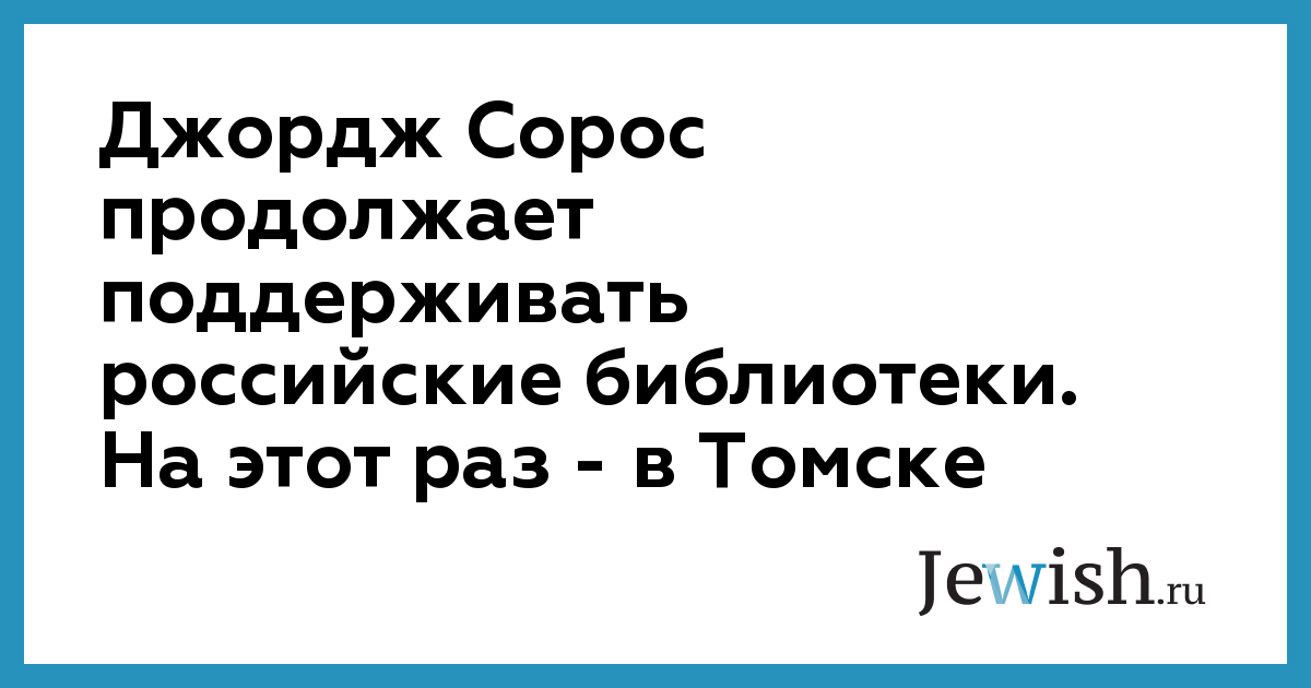 Джордж Сорос продолжает поддерживать российские библиотеки. На этот раз — в Томске