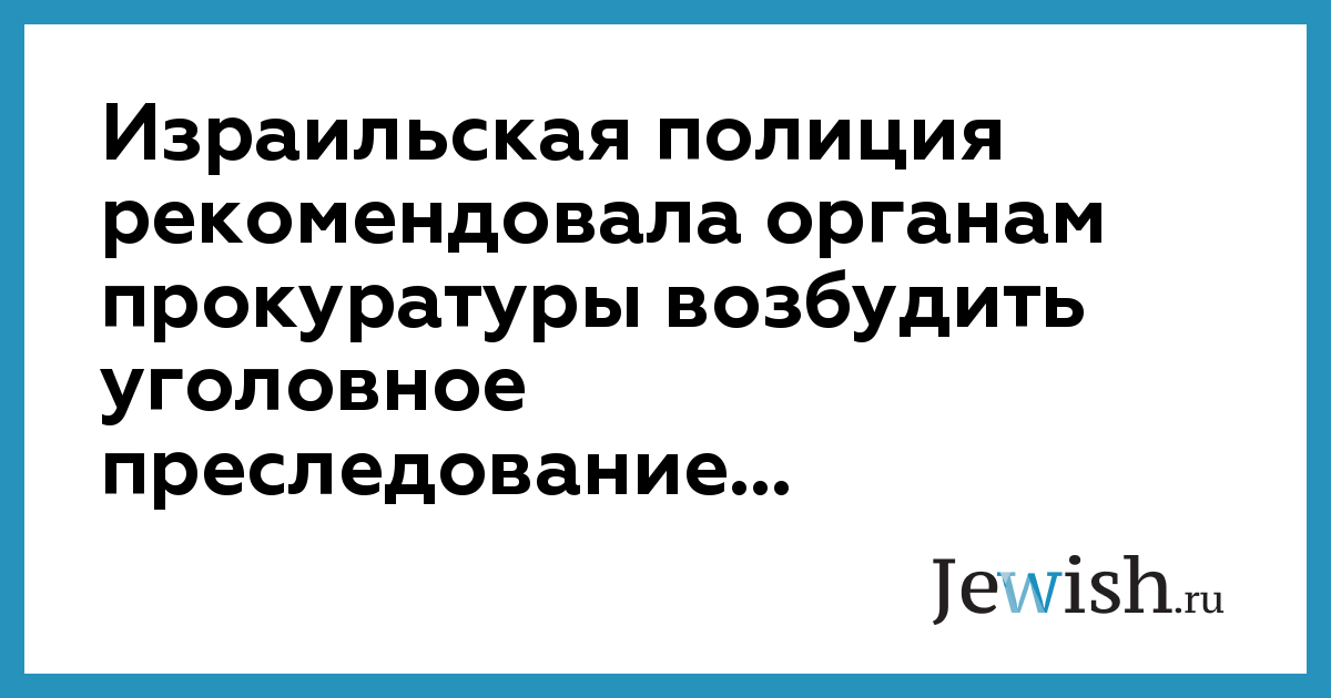 Израильская полиция рекомендовала органам прокуратуры возбудить уголовное преследование...
