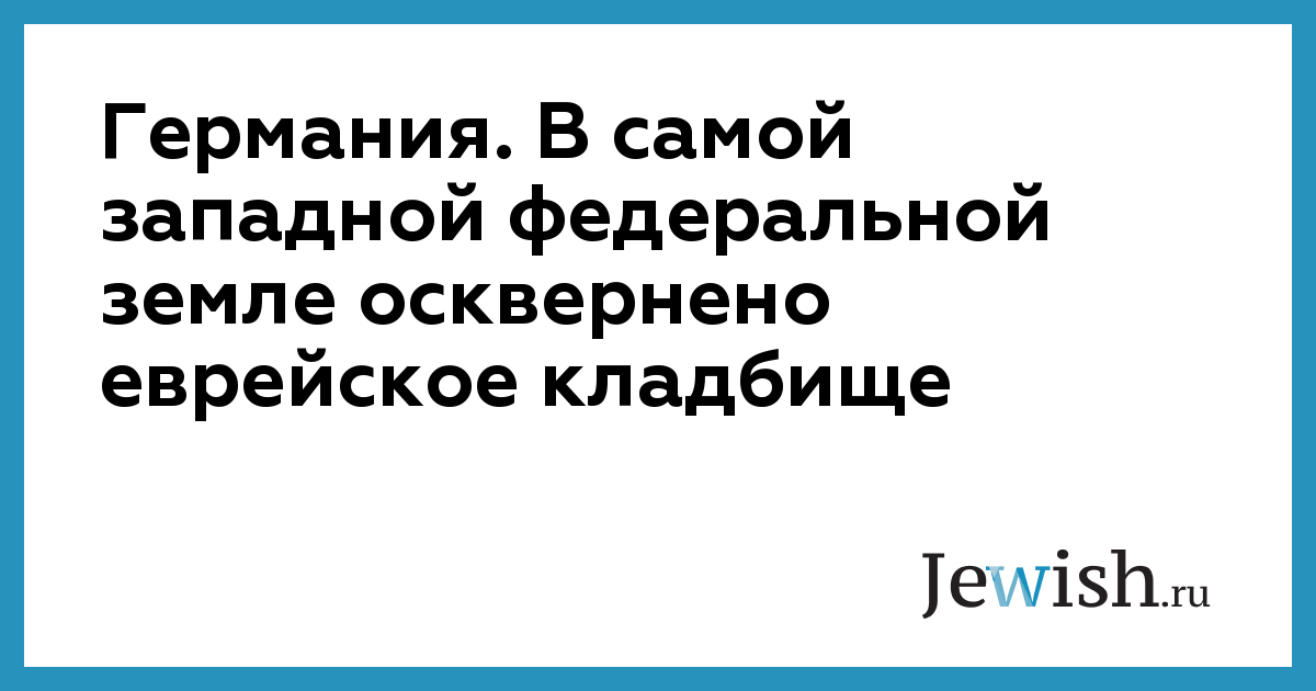 В среду в городе Саарбрюкене на западе Германии вандалы осквернили еврейское кладбище. Повалено 17 могильных камней. Однако, в отличие от предыдущих аналогичных случаев, полиция не обнаружила никаких нацистских знаков. Проводится расследование. В связи с участившимися случаями нападениями на синагоги и еврейские кладбища в 2000 году еврейская община Германии потребовала от правительства принятия дополнительных мер по защите своих учреждений — напомним, что недавно во время взрыва на вокзале в Дюссельдофе нескошько евреев — выходцев из бывшео СССР получили ранения. Это становится если не системой,то постоянным тревожным фоном, сопровождающим жизнь возрождающейся еврейской общины Эрец Ашкеназ. Кстати, многие еврейские организации, считающие память о Холокосте и шести миллионах его жертв одной из важнейших составляющих еврейской идентичности и самосознания в ХХ веке, осуждают тех евреев, которые едут в Германию жить. Осуждают особенно тех, кто подают заявки на переезд в Германию и принимают участие в программе правительственных мероприятий ФРГ по воссозданию еврейской общины страны за счет притока эмигрантов. Учитывая, что против миллионов евреев, живших в стране до Холокоста нынешняя численность общины просто ничтожна (менее 100 тысяч человек) — эта программа является для Германии частью искупления исторической вины перед народом, который нацисты планировали полностью истребить. Вина виной, а элементарные права и безопасность немецких евреев гарантировать пока и то удается с трудом. Хотя старания властей в этом направлении носят честный характер, проблема в укоренившейся ксенофобии и недолеченной нацистской заразе, которые иногда дают себя знать даже без всяких свастик и прочей фашистской символики...