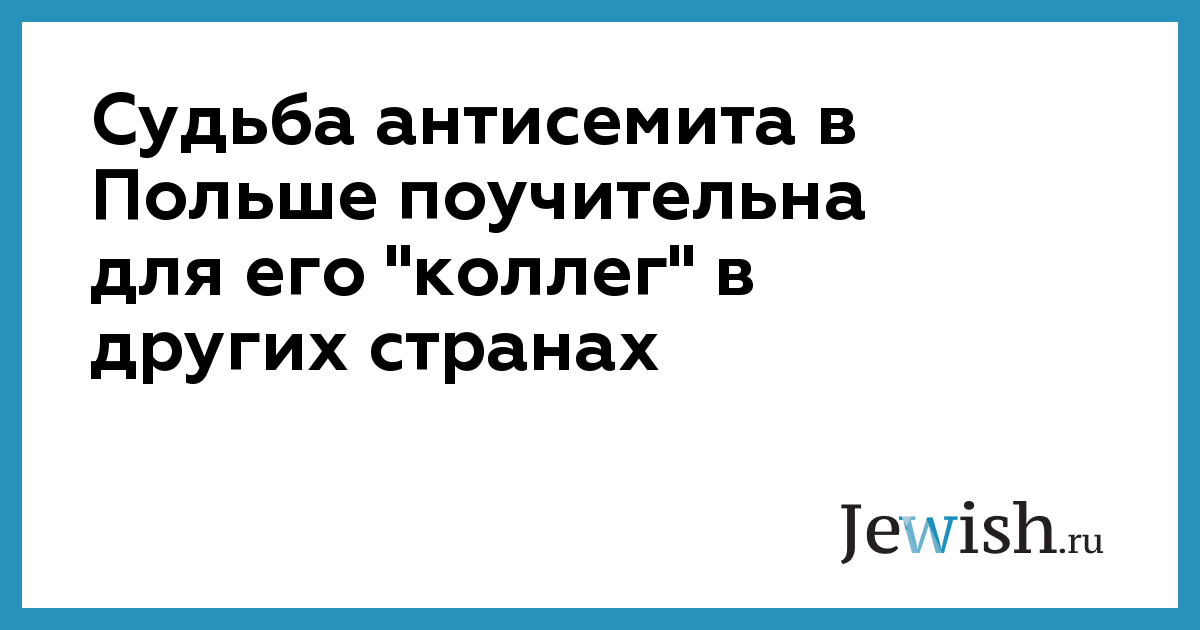 Судьба антисемита в Польше поучительна для его "коллег" в других странах