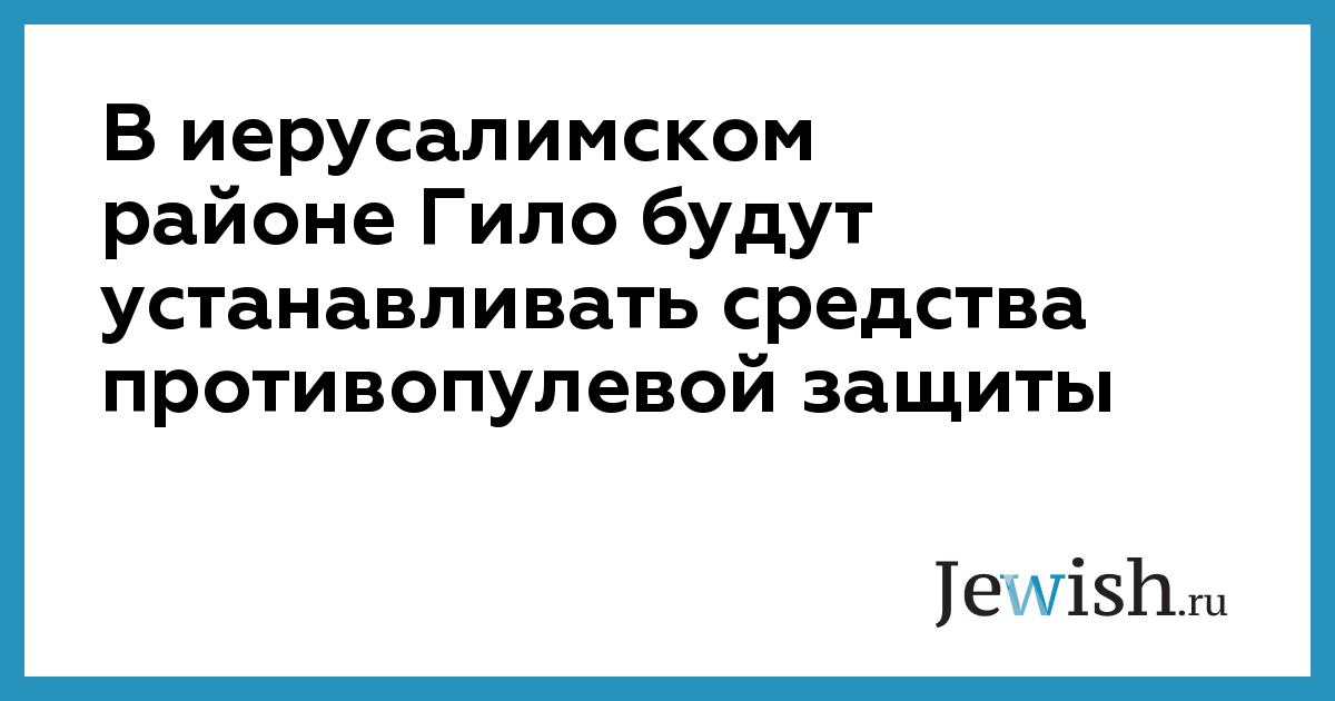 В иерусалимском районе Гило будут устанавливать средства противопулевой защиты