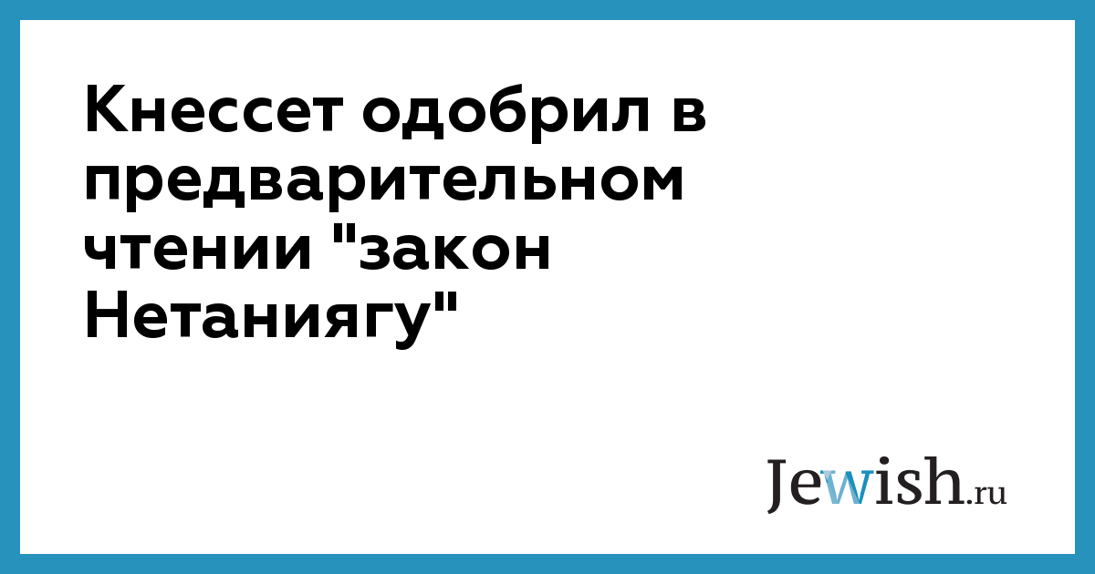 Кнессет одобрил в предварительном чтении "закон Нетаниягу"