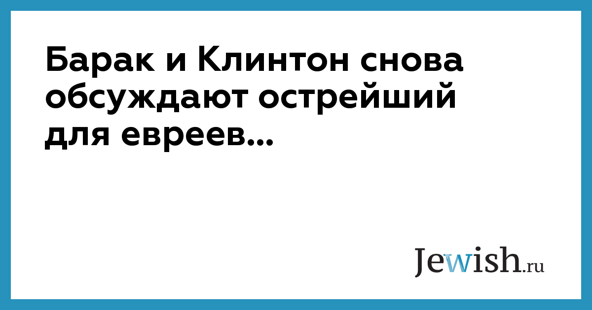 Барак и Клинтон снова обсуждают острейший для евреев...
