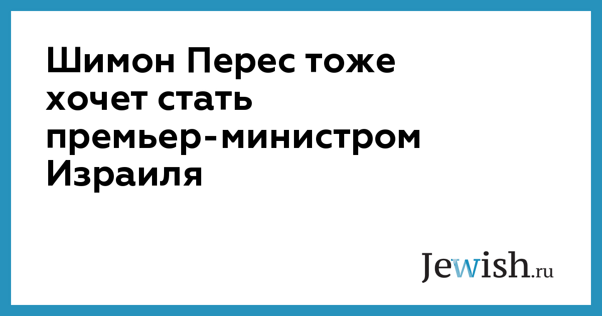 Шимон Перес тоже хочет стать премьер-министром Израиля