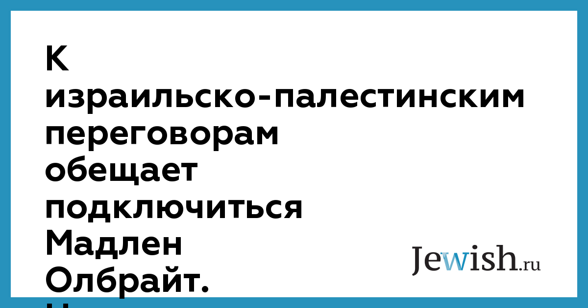 К израильско-палестинским переговорам обещает подключиться Мадлен Олбрайт. Не...