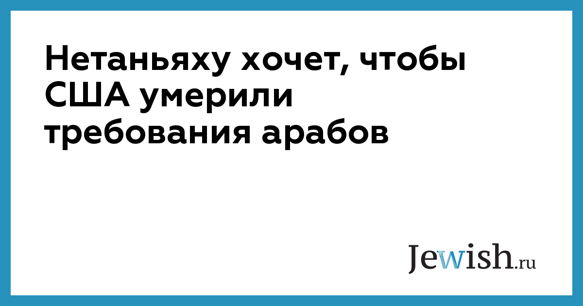 Нетаньяху хочет, чтобы США умерили требования арабов
