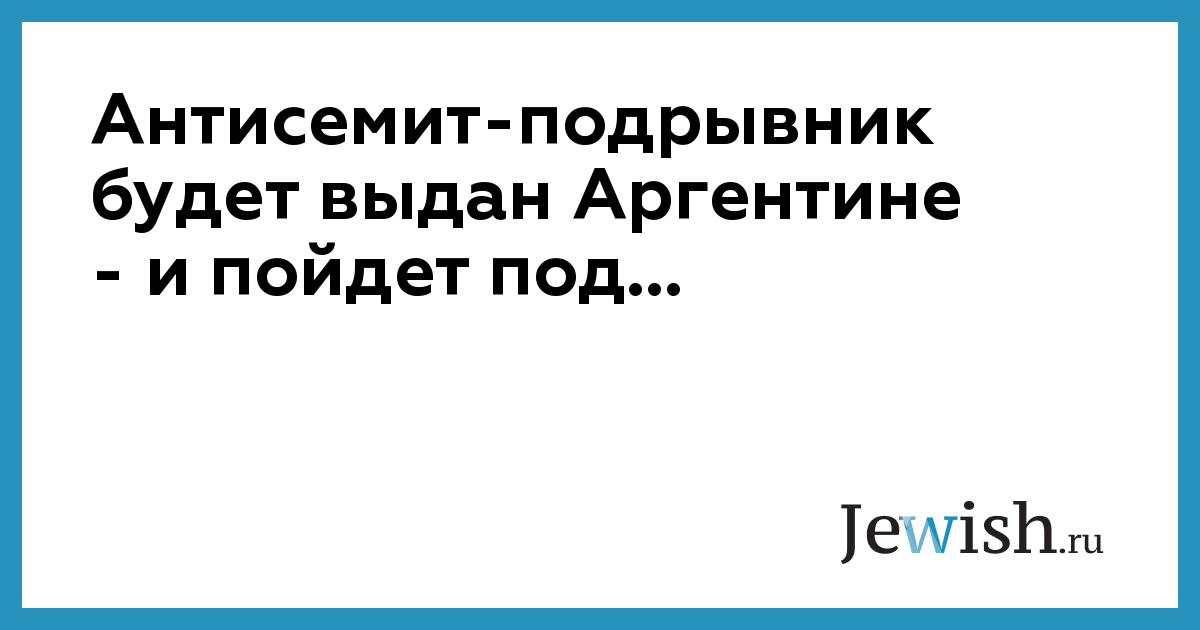 Антисемит-подрывник будет выдан Аргентине — и пойдет под...