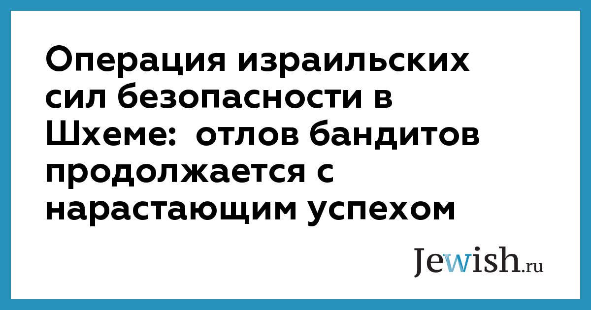 Операция израильских сил безопасности в Шхеме: отлов бандитов продолжается с нарастающим успехом