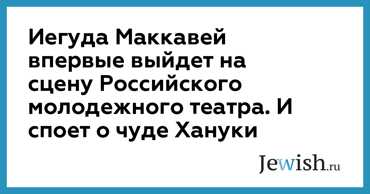 Иегуда Маккавей впервые выйдет на сцену Российского молодежного театра. И споет о чуде Хануки