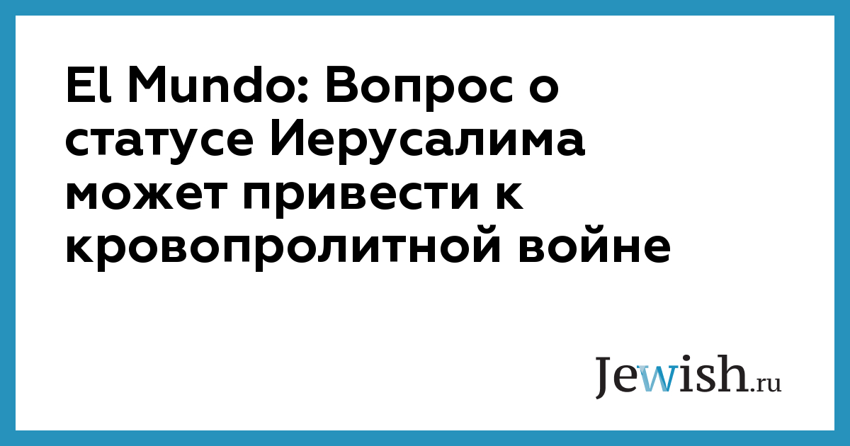 Вопрос о будущем статусе Иерусалима может привести к кровопролитной войне, пишет испанская газета El Mundo. Служба государственной безопасности Израиля (ШАБАК)предупреждает, что уже сегодня существуют "ультранационалистические" группировки, которые готовы пойти на любые преступления, включая взрывы мечетей, для того чтобы сорвать переговоры с Палестиной и не допустить подписания мирного соглашения. Напомним, что согласно одному из условий соглашения, предложенных американским президентом Биллом Клинтоном, Израиль должен будет передать Палестине значительную часть Восточного Иерусалима, главным образом его исторические районы — мусульманский квартал, христианский квартал и две трети армянского квартала. Под контроль Палестины попадают также палестинские кварталы, расположенные за стенами города. Со своей стороны Израиль сохранит контроль над еврейским кварталом и одной третью армянского квартала, который будет служить проходом к Стене плача. Израильские патриоты не могут смириться с тем, что на Храмовой горе будет развеваться палестинский флаг, и уже сегодня начинают призывать израильтян к войне. Не популярна такая идея и среди еврейского населения Иерусалима, которое готово "противостоять разделению города точно так же, как их предки противостояли римлянам", отмечает El Mundo, статью из которой передает агентство РБК.
