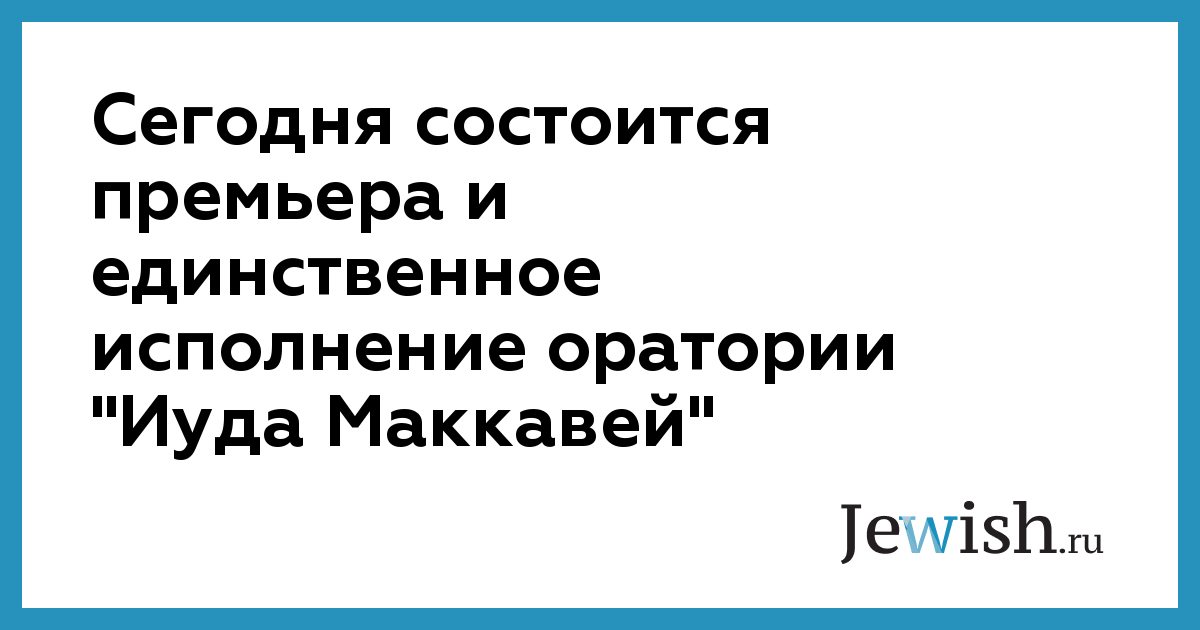Сегодня состоится премьера и единственное исполнение оратории "Иуда Маккавей"