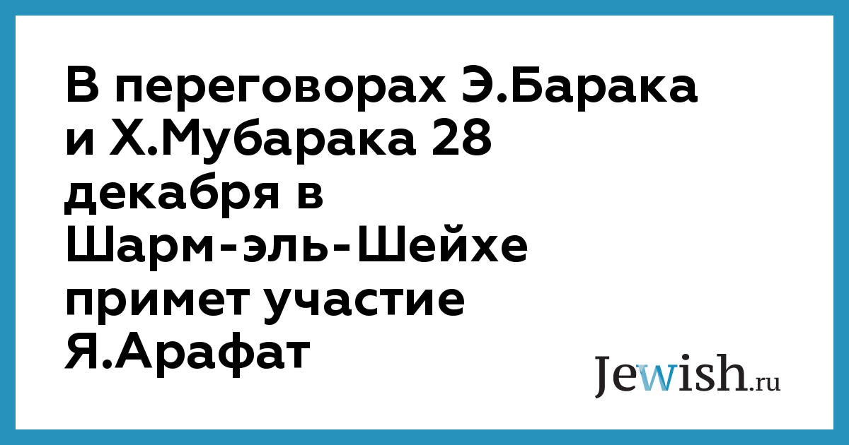В переговорах Э.Барака и Х.Мубарака 28 декабря в Шарм-эль-Шейхе примет участие Я.Арафат