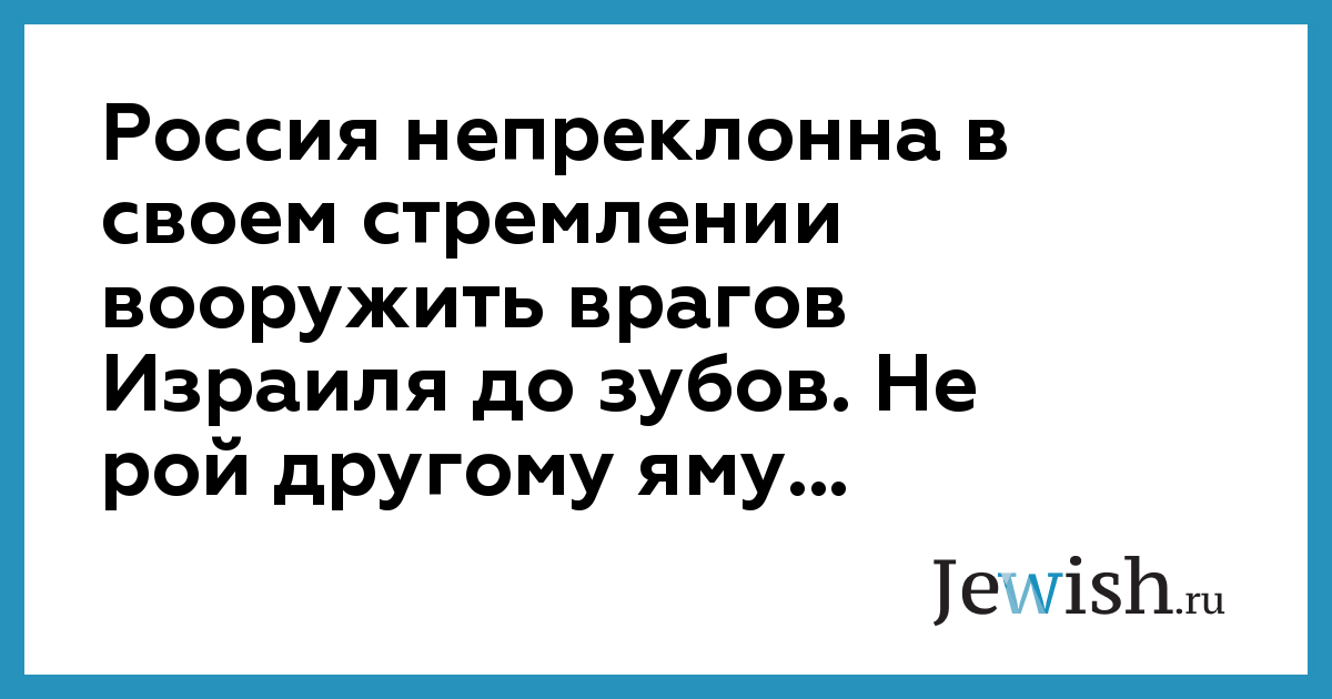Россия непреклонна в своем стремлении вооружить врагов Израиля до зубов. Не рой другому яму...