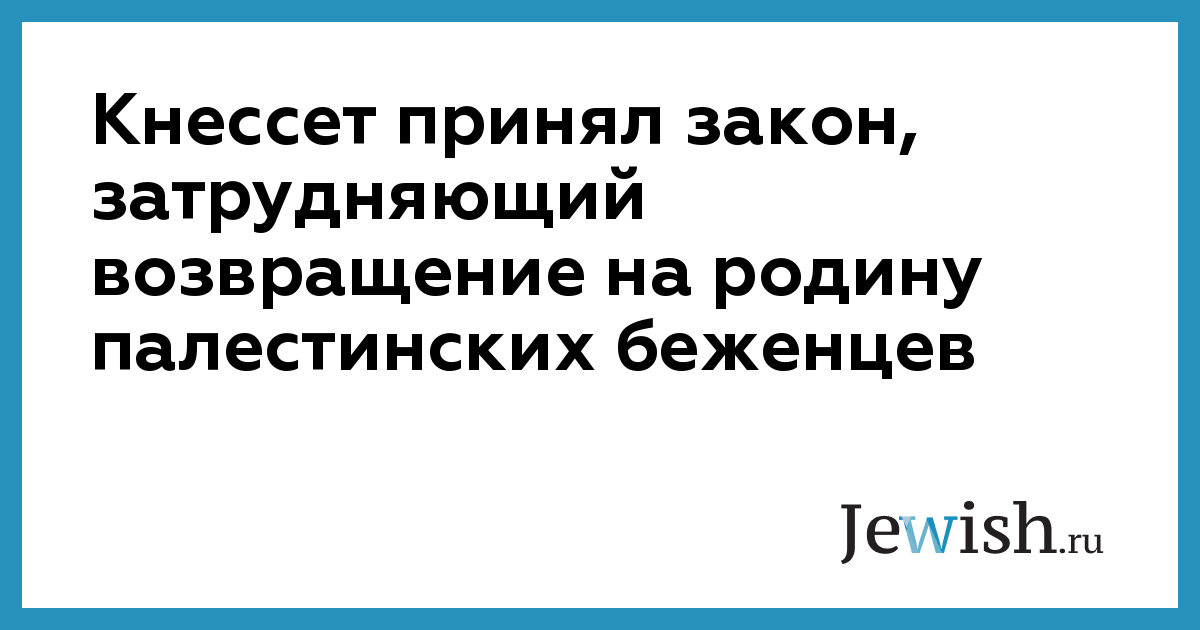 Кнессет принял закон, затрудняющий возвращение на родину палестинских беженцев