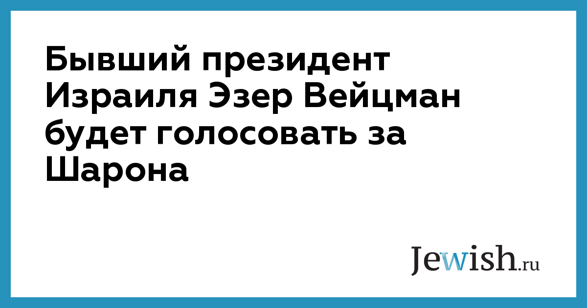 Бывший президент Израиля Эзер Вейцман будет голосовать за Шарона