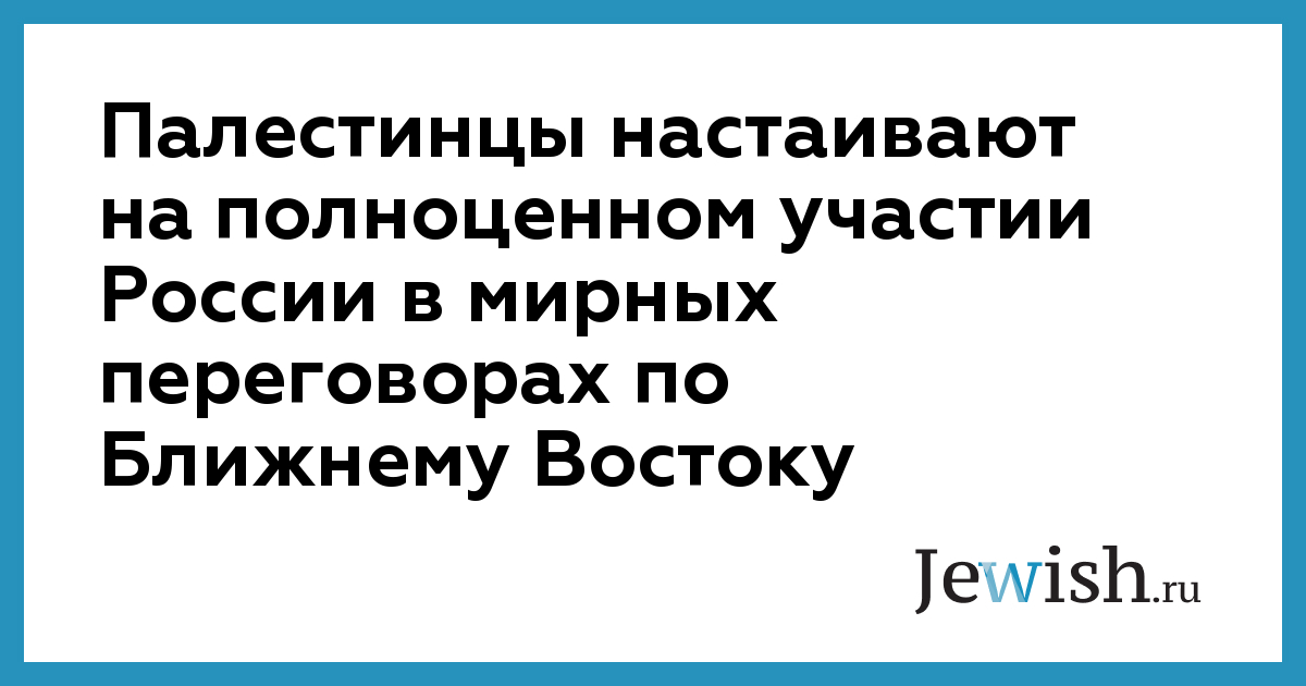 Палестина настаивает на полноценном участии России в мирных переговорах по урегулированию ситуации на "оккупированных палестинских землях". Об этом заявил сегодня на пресс-конференции посол Палестины в Москве Хайри Аль-Ориди. Он отметил, что палестинская сторона так и не получила "вразумительного ответа" от представителей США и Израиля, почему Россия до сих пор не участвует в этих переговорах. По его словам, Палестина всегда настаивала на участии России в переговорах в качестве коспонсора мирного процесса. Посол считает, что роль РФ на переговорах должна быть "аналогична уровню и статусу другого коспонсора — США". Он подчеркнул, что несмотря на то, что Россия не участвует сегодня в мирных переговорах, тем не менее с российской стороной постоянно проводятся консультации. Без полноценного участия РФ в переговорах, считает посол, невозможно создать условия для "достижения подлинного мира в этом регионе". С приходом к власти новой администрации США и сменой правительства в Израиле в результате досрочных выборов не произойдет существенных изменений в мирном переговорном процессе, и переговоры будут продолжены, подчеркнул Хайри Аль-Ориди, поскольку решение принималось международным сообществом, и оно закреплено в резолюции СБ ООН.