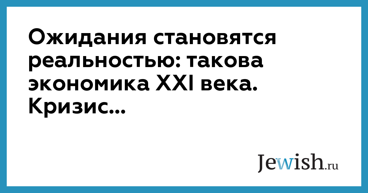 Ожидания становятся реальностью: такова экономика XXI века. Кризис...