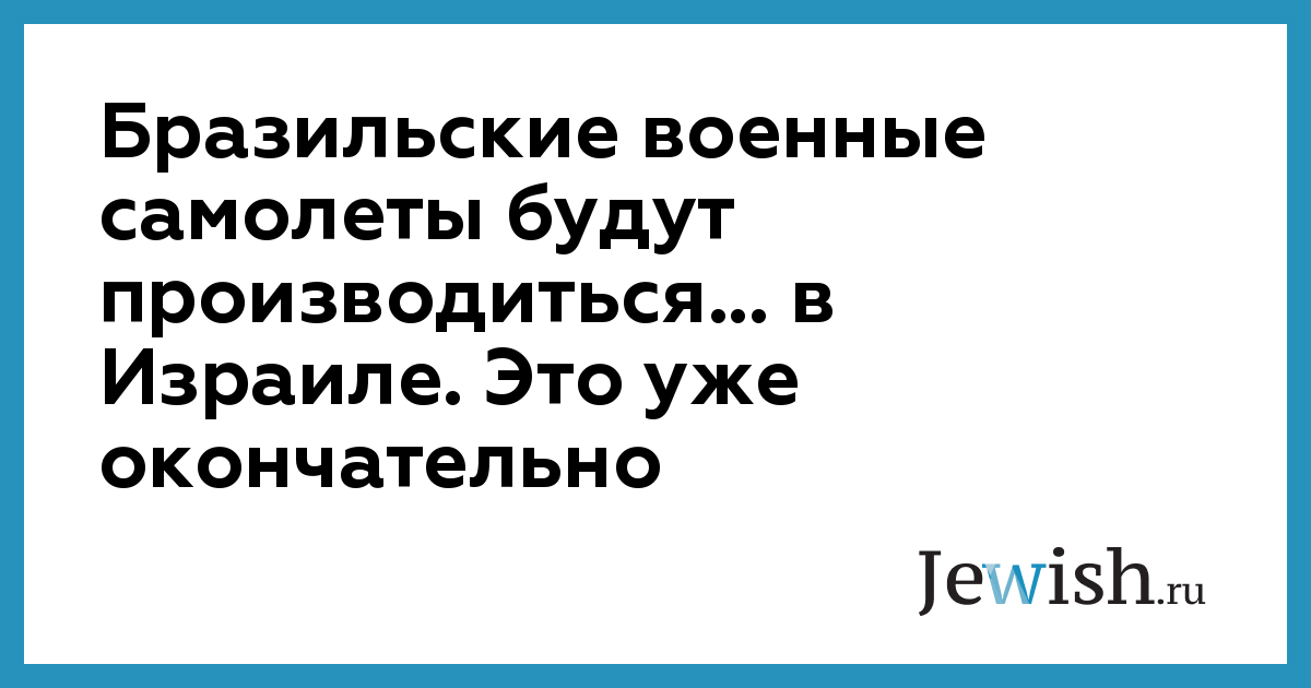 Бразильские военные самолеты будут производиться... в Израиле. Это уже окончательно