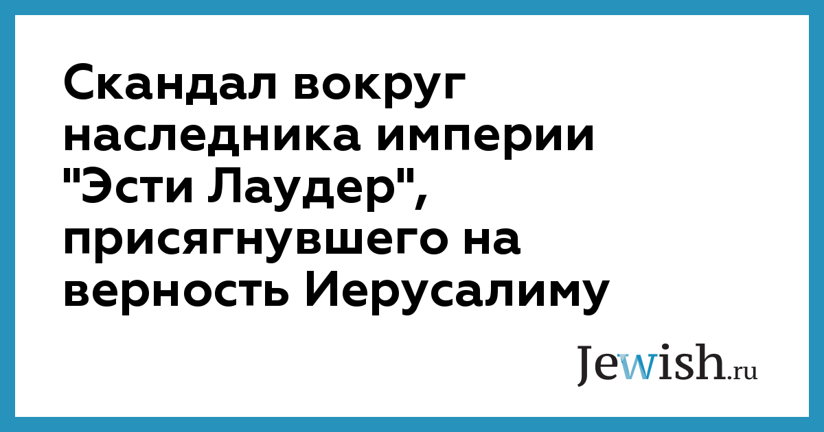 Скандал вокруг наследника империи "Эсти Лаудер", присягнувшего на верность Иерусалиму