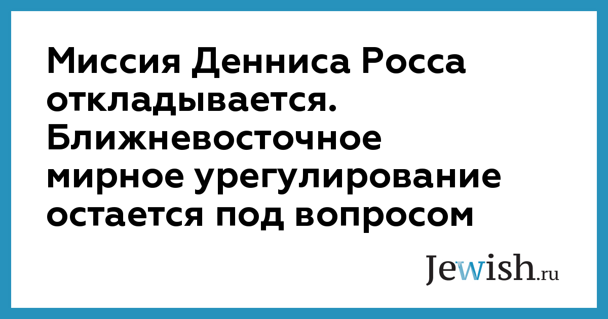 Миссия Денниса Росса откладывается. Ближневосточное мирное урегулирование остается под вопросом