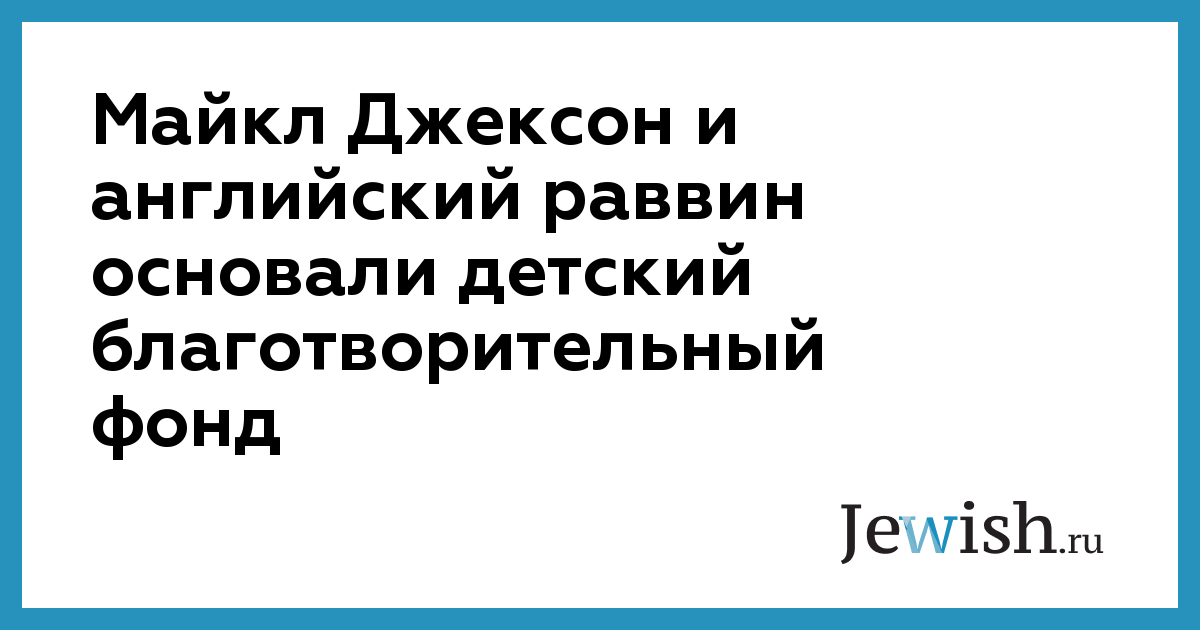 Майкл Джексон и английский раввин основали детский благотворительный фонд