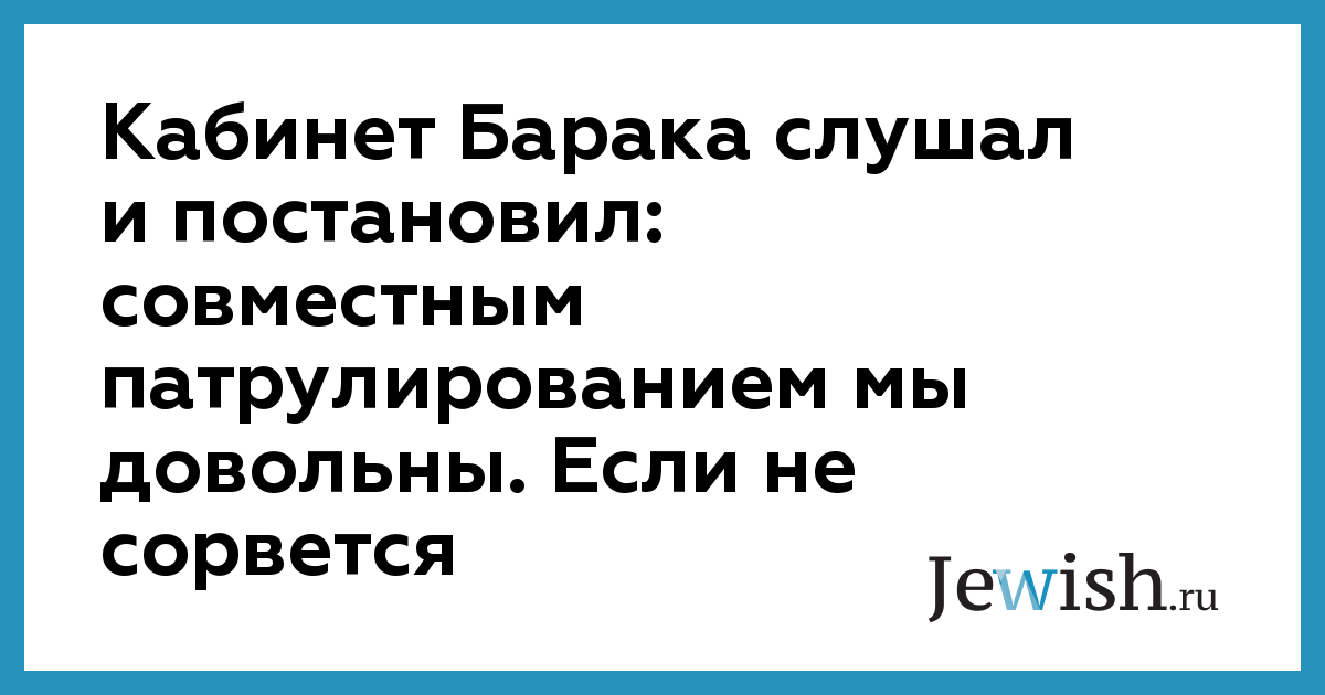 Кабинет Барака слушал и постановил: совместным патрулированием мы довольны. Если не сорвется