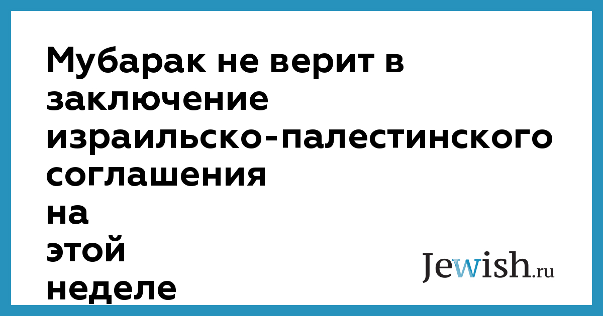 Президент Египта Мухаммед Хусни Мубарак исключил возможность достижения палестино-израильского соглашения до 20 января, когда истекает срок полномочий нынешнего президента США Билла Клинтона. Египетский лидер также подверг сомнению план мирного палестино-израильского урегулирования, предложенный Клинтоном, и призвал будущую американскую администрацию продолжить усилия по установлению мира на Ближнем Востоке. "В предложениях Клинтона говорится о предоставлении Палестине от 92% до 96% территории Западного берега реки Иордан, однако, если свериться с картой, можно убедиться, что в реальности ни Иерусалим, ни еврейские поселения не включены в перечень земель, подлежащих передаче под юрисдикцию будущего палестинского государства", – указал Мубарак. "Я надеюсь, что новая американская администрация будет прилагать усилия, направленные на достижение мира и стабильности в регионе", – сказал президент Египта. В начале прошедшей недели Билл Клинтон обрисовал контуры своего плана ближневосточного урегулирования, нацеленного на заключение мирного палестино-израильского соглашения до времени окончания его президентских полномочий и проведения выборов премьер-министра Израиля 6 февраля 2001 года. Однако, как уже сообщалось, палестинцы отвергли этот план из-за того, что он, в частности, не предусматривает отхода Израиля к границам, существовавшим до 4 июня 1967 года, и возвращения палестинских беженцев.