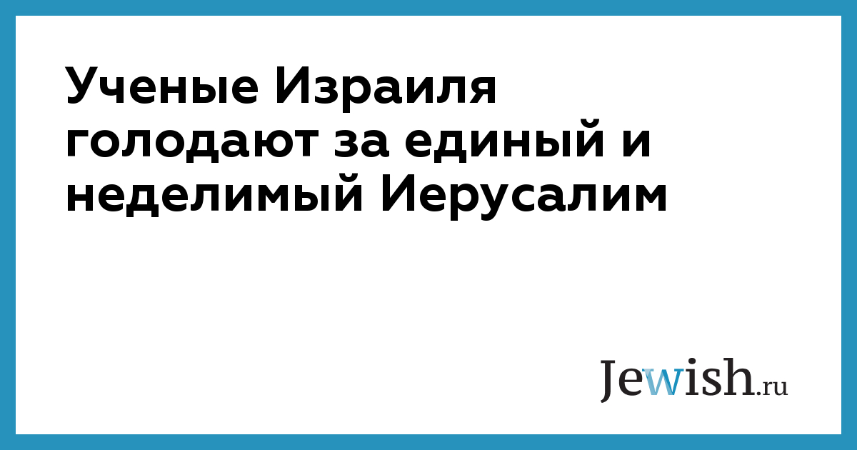 Ученые Израиля голодают за единый и неделимый Иерусалим