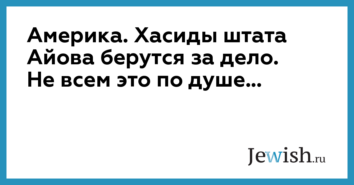 Америка. Хасиды штата Айова берутся за дело. Не всем это по душе...