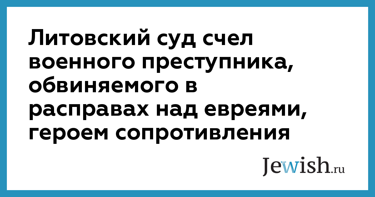 Литовский суд счел военного преступника, обвиняемого в расправах над евреями, героем сопротивления