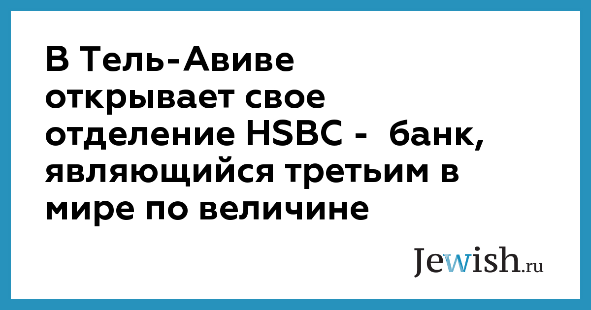 В Тель-Авиве открывает свое отделение HSBC — банк, являющийся третьим в мире по величине