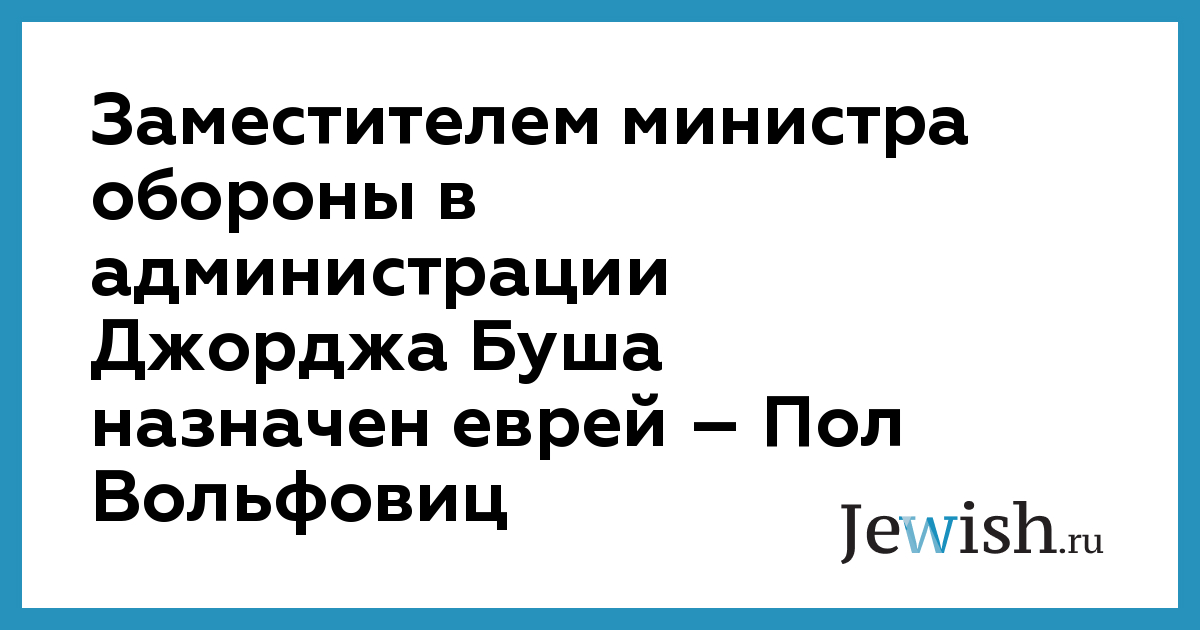 Заместителем министра обороны в администрации Джорджа Буша назначен еврей – Пол Вольфовиц