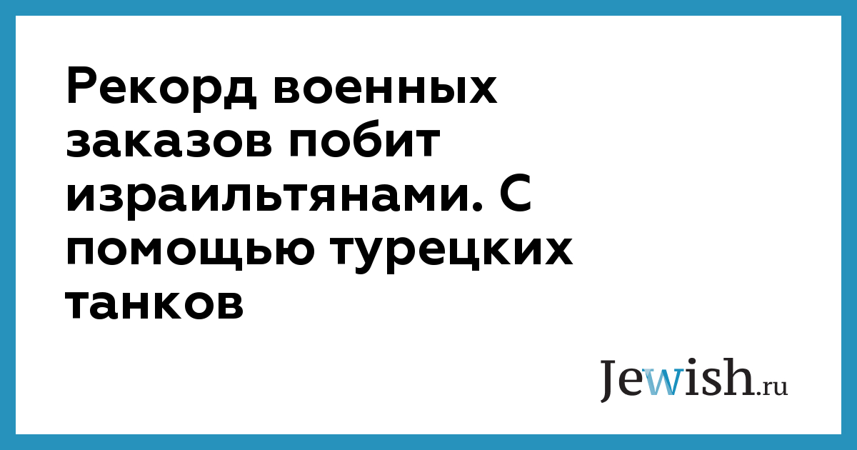 Рекорд военных заказов побит израильтянами. С помощью турецких танков