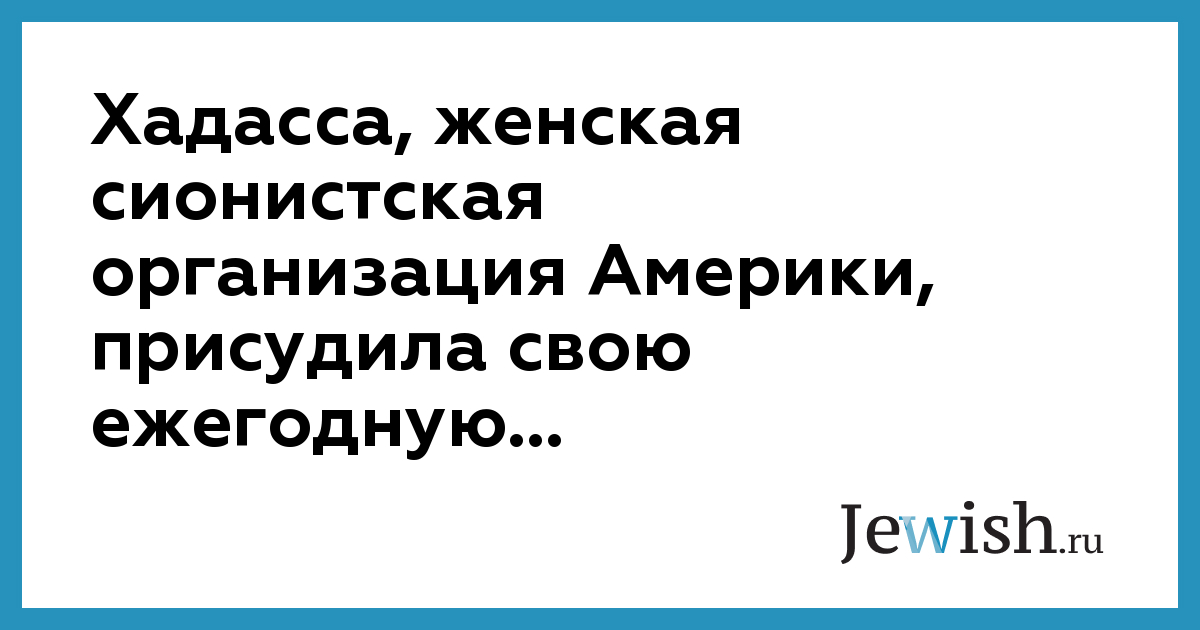 Хадасса, женская сионистская организация Америки, присудила свою ежегодную...