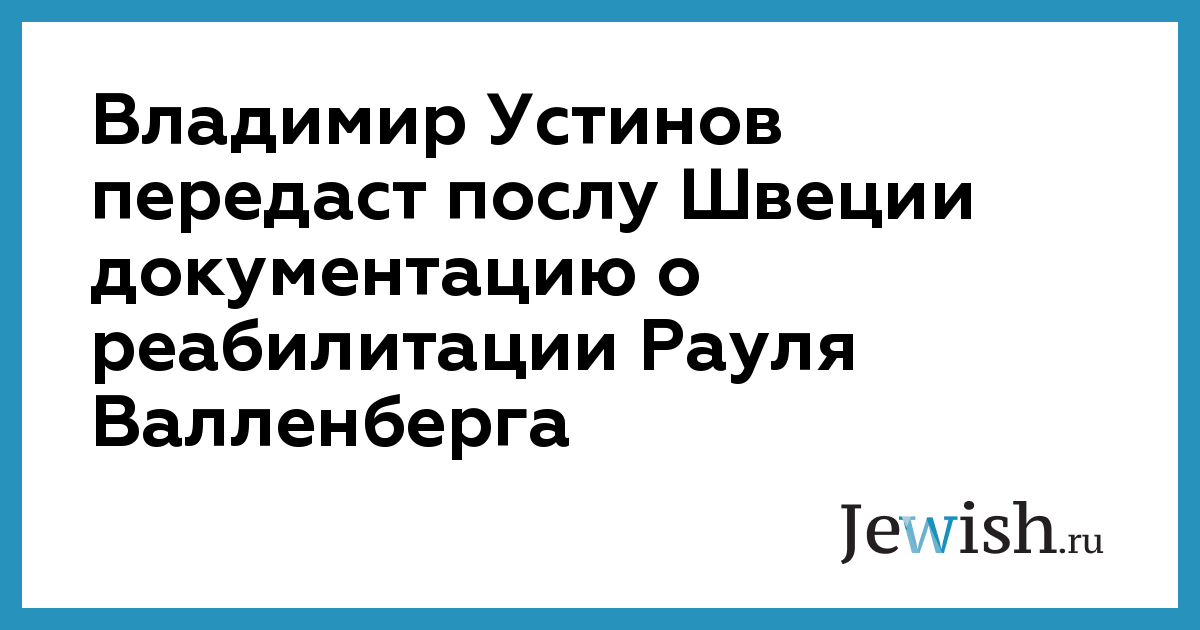 Владимир Устинов передаст послу Швеции документацию о реабилитации Рауля Валленберга