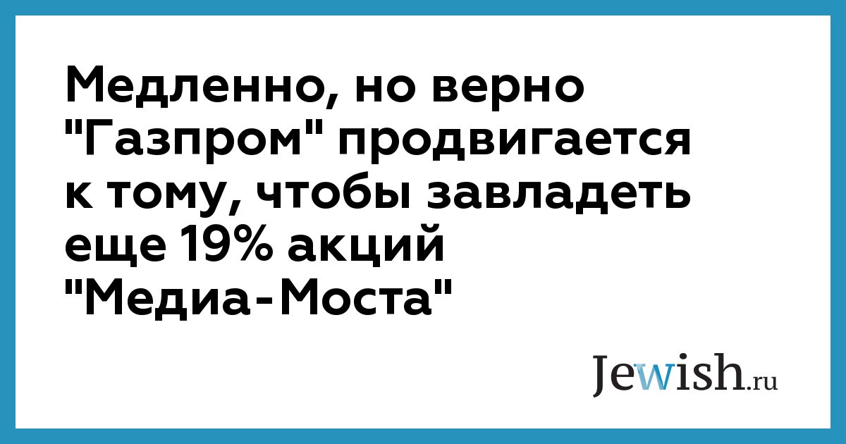 Медленно, но верно "Газпром" продвигается к тому, чтобы завладеть еще 19% акций "Медиа-Моста"