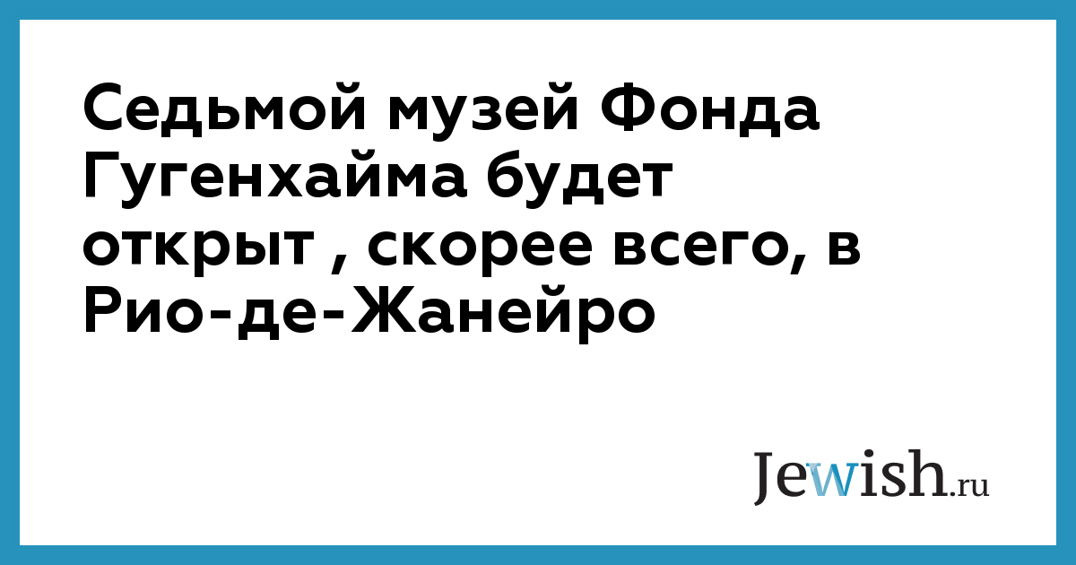 Седьмой музей Фонда Гугенхайма будет открыт , скорее всего, в Рио-де-Жанейро