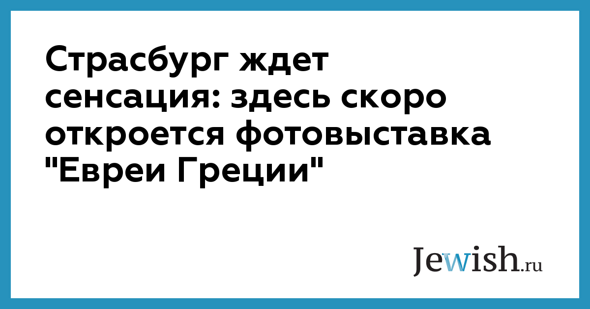 Страсбург ждет сенсация: здесь скоро откроется фотовыставка "Евреи Греции"