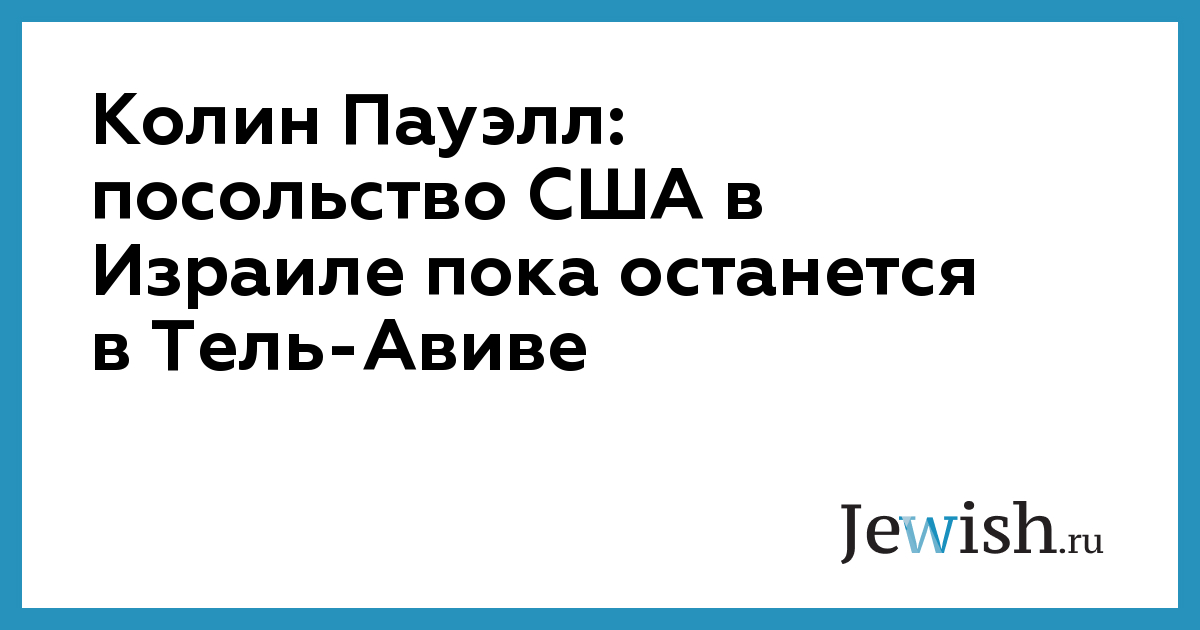 Колин Пауэлл: посольство США в Израиле пока останется в Тель-Авиве