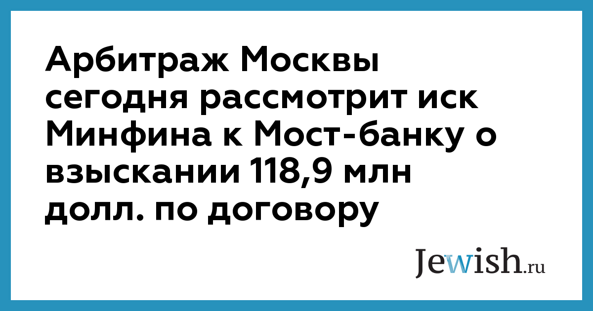 Арбитраж Москвы сегодня рассмотрит иск Минфина к Мост-банку о взыскании 118,9 млн долл. по договору