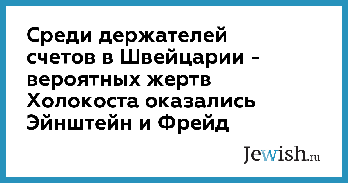 Среди держателей счетов в Швейцарии — вероятных жертв Холокоста оказались Эйнштейн и Фрейд